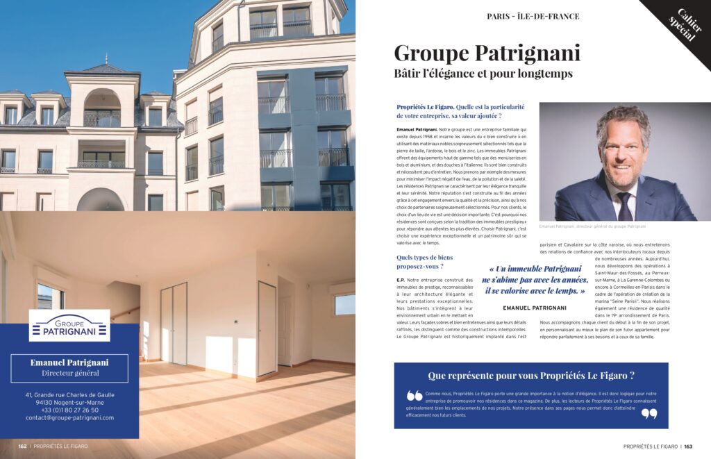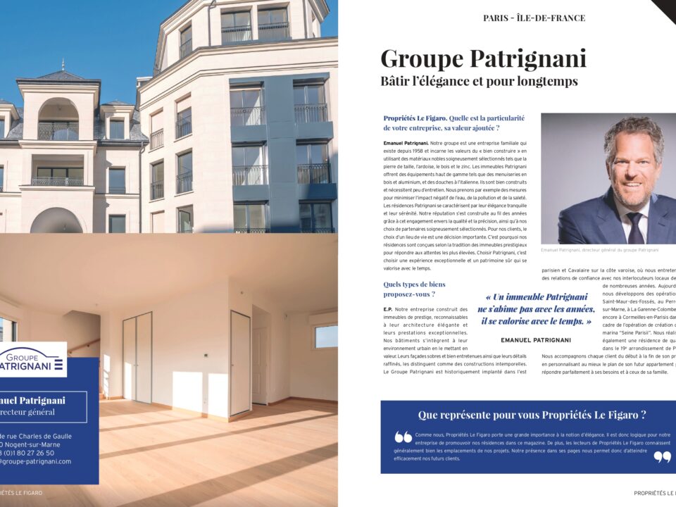 Retrouvez toute l’actualité du Groupe Patrignani au travers de publications régulières sur les nouveaux projets, les distinctions et articles de presse.